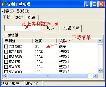 1. 專利號貼在下載的空格,按加入,全部下載。