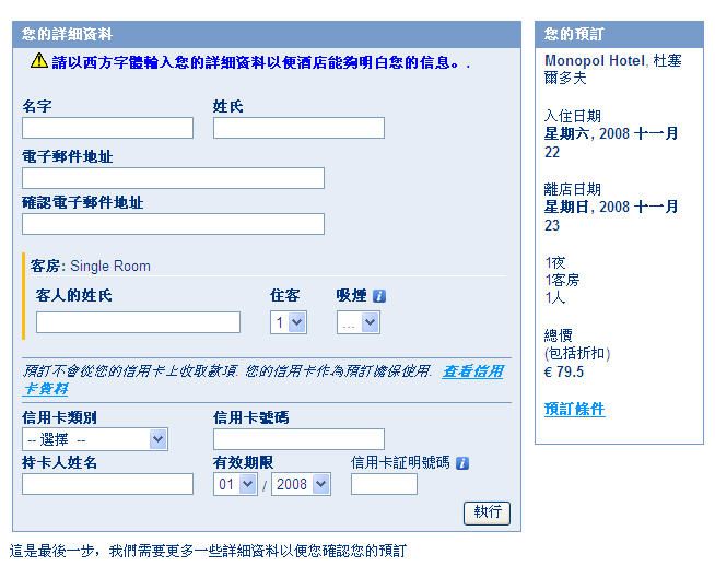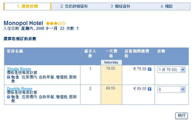 4. 比如說選一家三星級的旅館,BOOKCOM的好處是有針對旅館寫一些介紹,中文介紹的部分還滿多的,也可從這看有哪些客房是合適的,