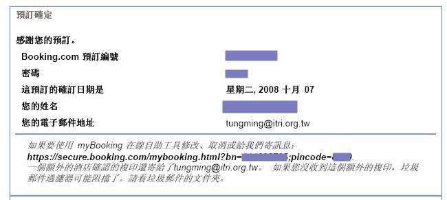 8. 填寫完畢後會出現預定確認的資料,要將此資料保存下來,裡面有預定編號、密碼以及要做預定變更的資訊。