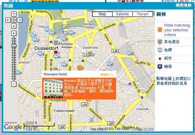 5. 按一下查看地圖,這個功能也滿貼心的,使用Google Map,還會將附近的旅館、地標都顯示出來,可以讓人有更多更清楚的選擇。